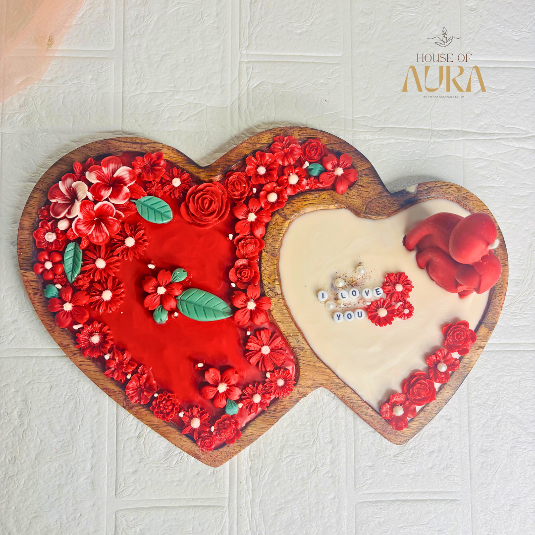 Introducing the Double Heart Wooden Tray Candle by House of Aura — a handcrafted masterpiece designed to celebrate love, connection, and storytelling.