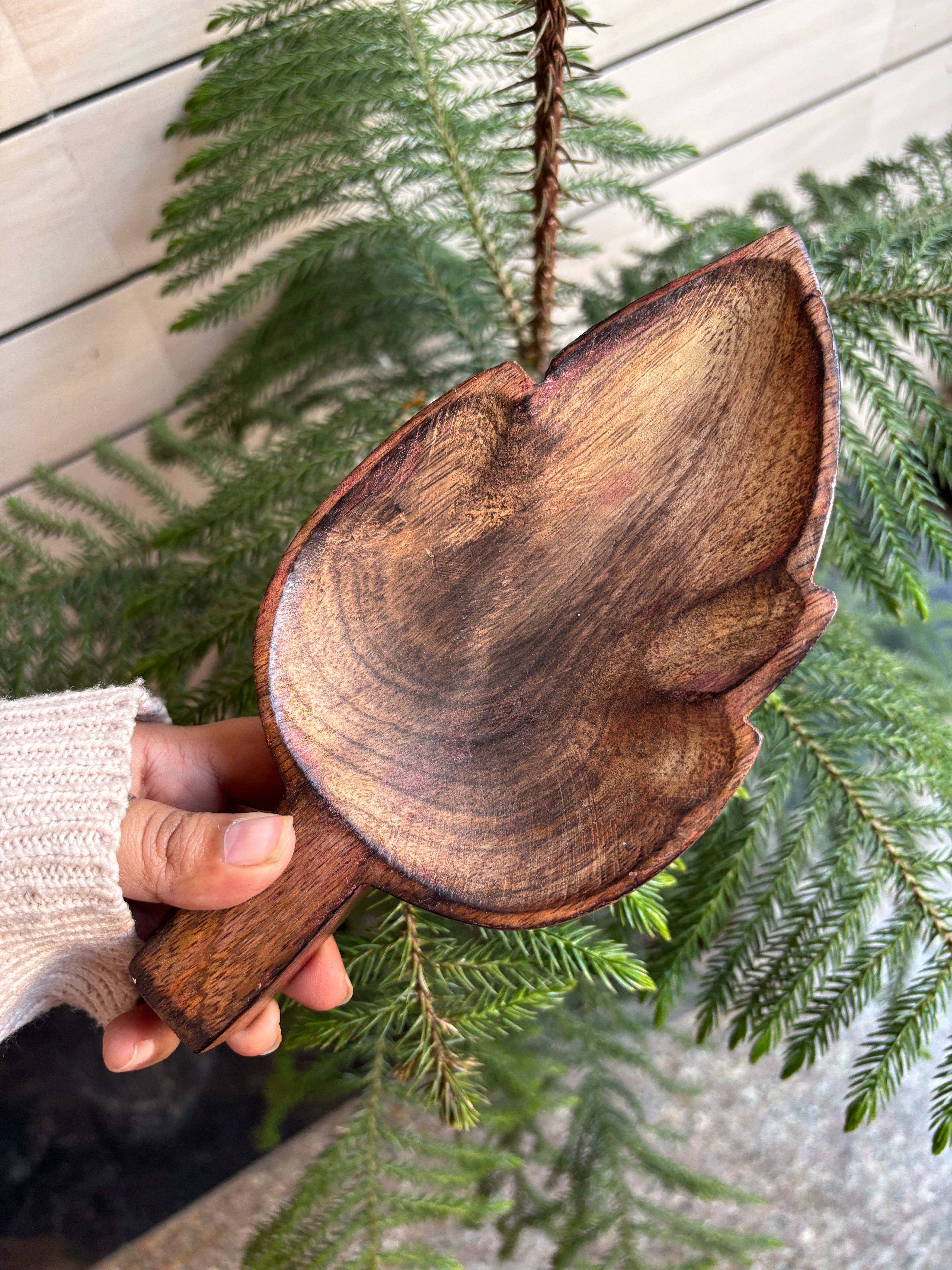 This beautifully carved, leaf-shaped wooden tray is a stunning raw material for artisanal candles. With its smooth, polished finish and rich natural wood grain, it embodies warmth and rustic charm.
